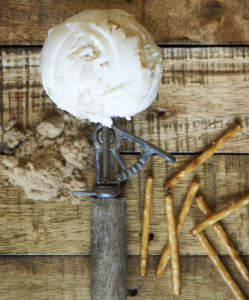 Our base has a brown sugar sauce added, then we fold in broken pretzel sticks for a balanced sweet and salty flavor.